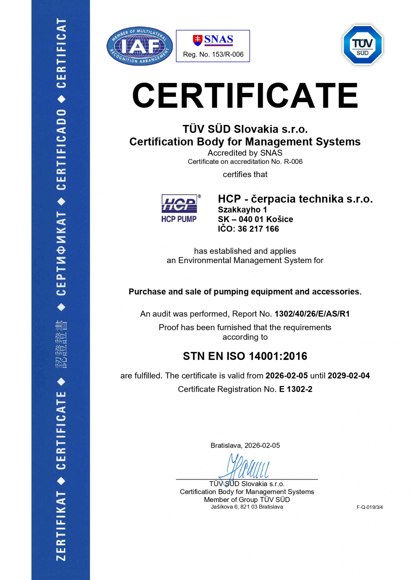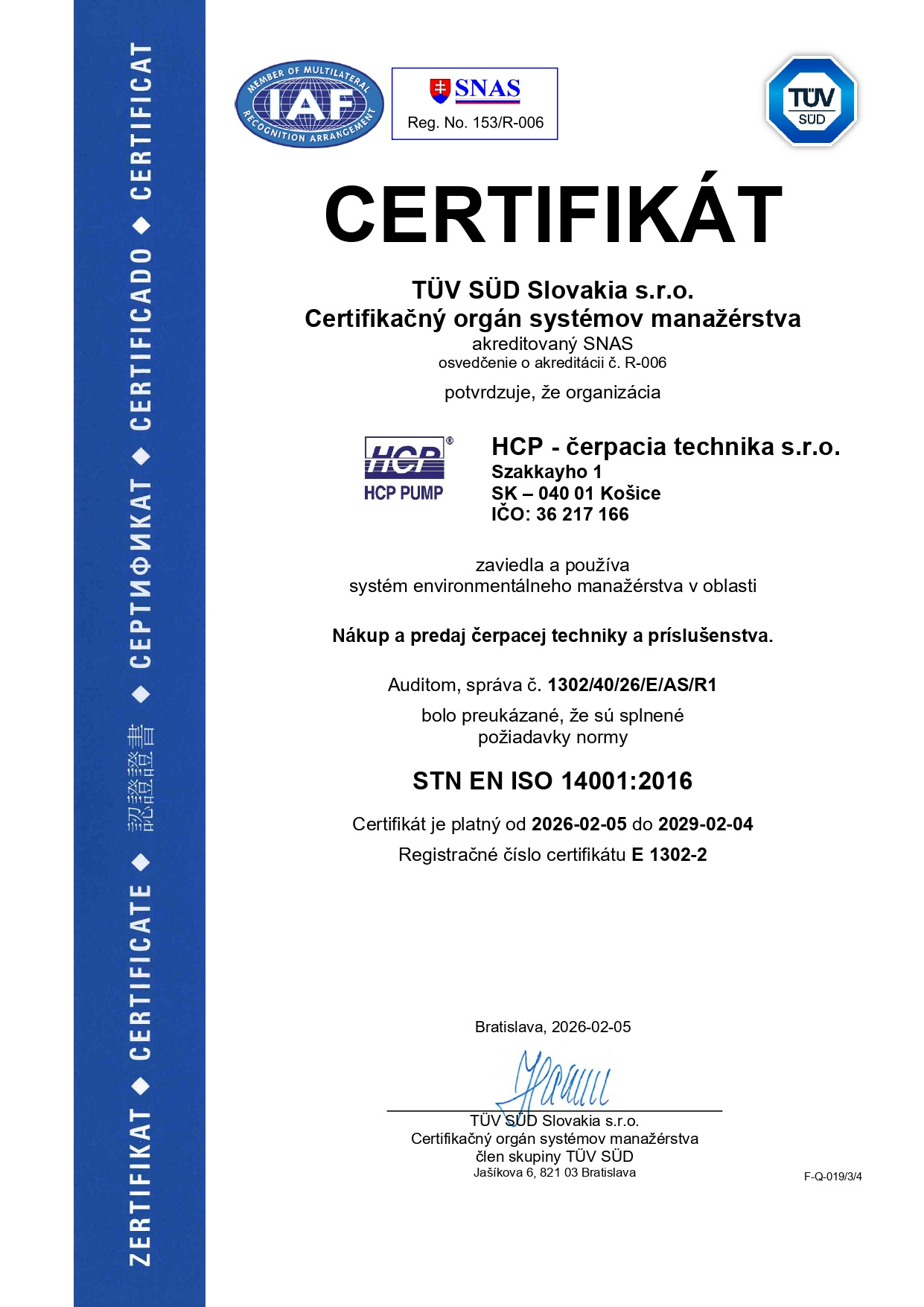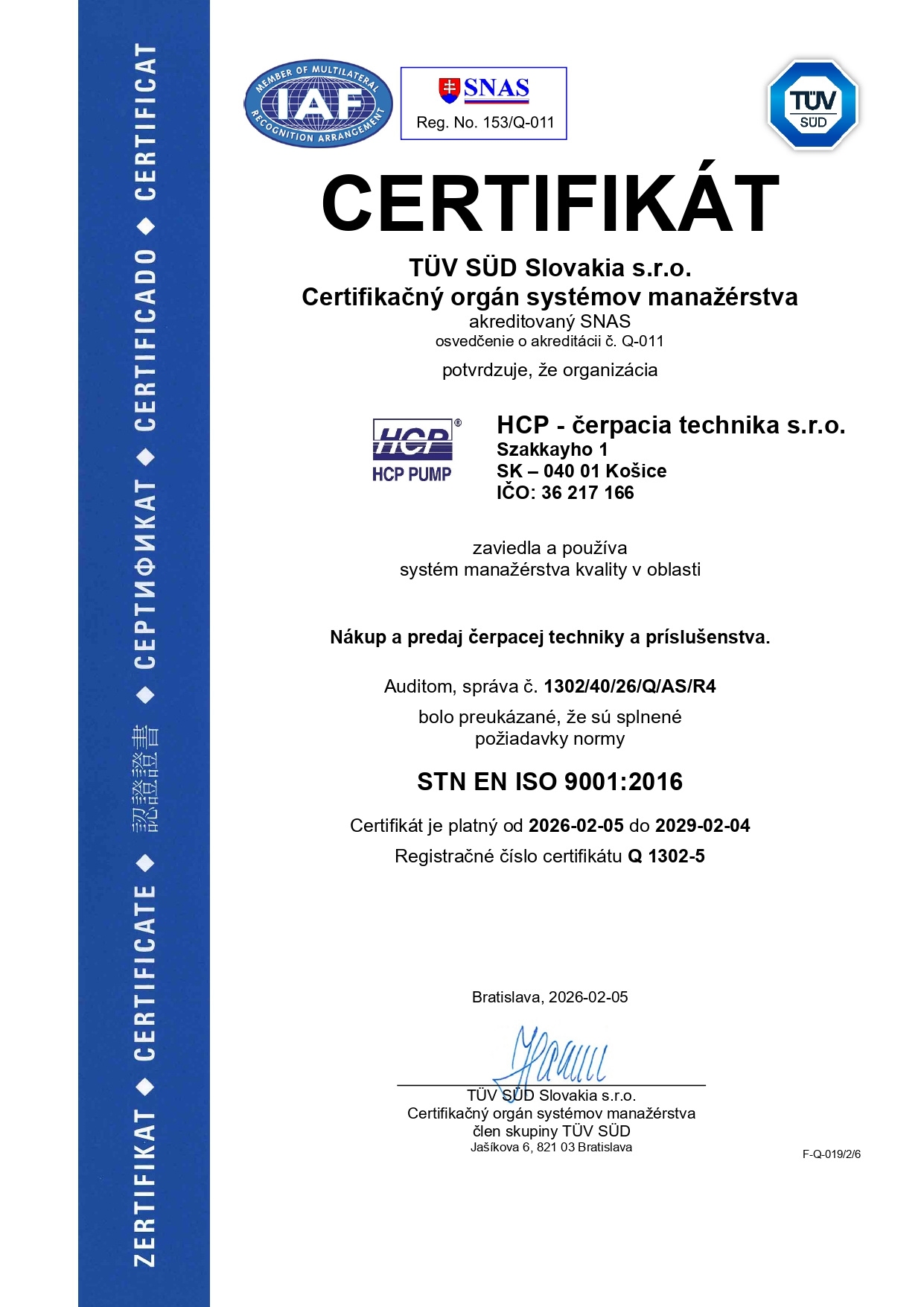 Firma HCP čerpacia technika s.r.o. vznikla 1.11.2002 ako dcérska spoločnosť firmy K + H čerpací technika s.r.o. v Olomouci. Od svojho začiatku sa firma zamerala na predaj ponorných čerpadiel HCP a pružných spojok RATHI. Pre promptné vybavenie požiadaviek našich zákazníkov sme zriadili na Szakkayho ul. č. 1, kde je sídlo firmy aj skladové priestory. Postupom času sme vzhľadom pre potrebu zákazníkov rozšírili sortiment o predaj napínacích systémov Superbolt, kde sa nám podarilo získať výhradné zastúpenie pre Slovenskú republiku.