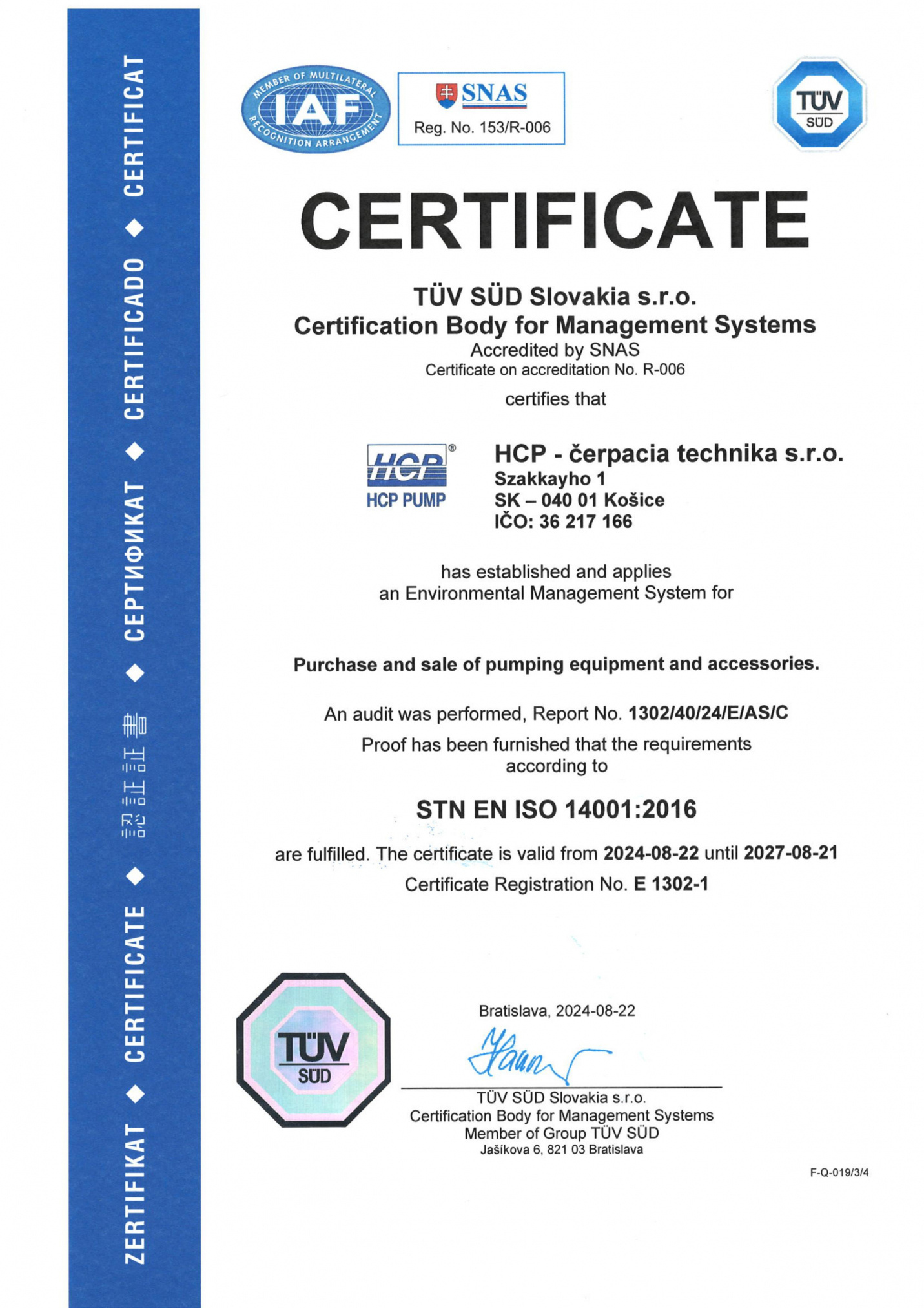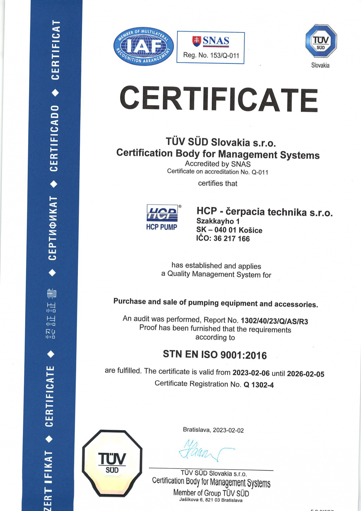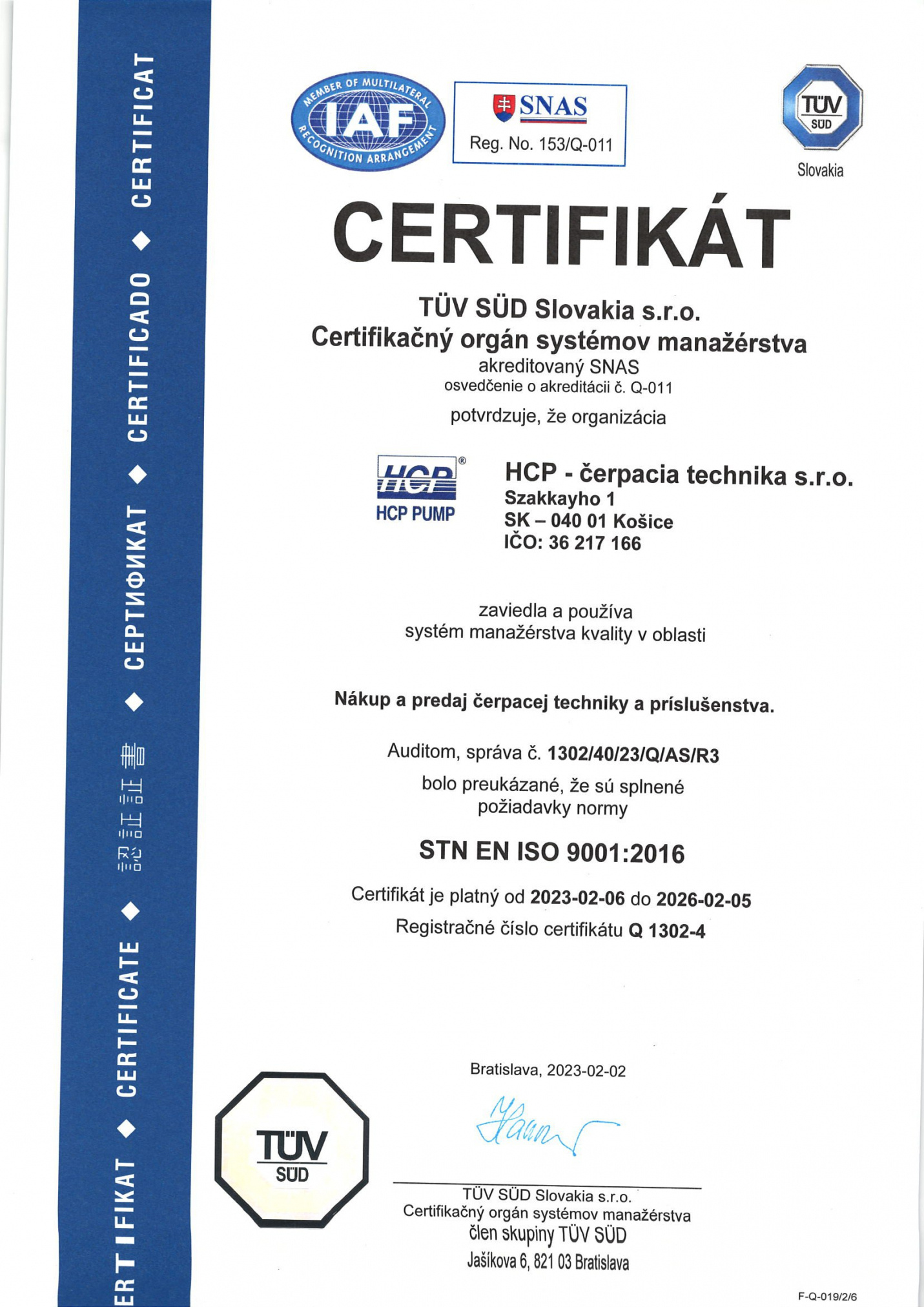 Firma HCP čerpacia technika s.r.o. vznikla 1.11.2002 ako dcérska spoločnosť firmy K + H čerpací technika s.r.o. v Olomouci. Od svojho začiatku sa firma zamerala na predaj ponorných čerpadiel HCP a pružných spojok RATHI. Pre promptné vybavenie požiadaviek našich zákazníkov sme zriadili na Szakkayho ul. č. 1, kde je sídlo firmy aj skladové priestory. Postupom času sme vzhľadom pre potrebu zákazníkov rozšírili sortiment o predaj napínacích systémov Superbolt, kde sa nám podarilo získať výhradné zastúpenie pre Slovenskú republiku.